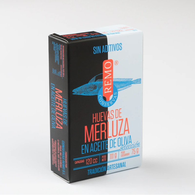 Las huevas de merluza se envasan a mano utilizando aceite de oliva refinado especial para conservas.